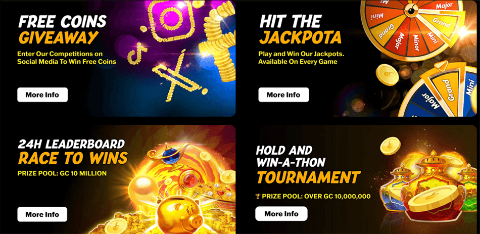 Hit the Jackpota – I can never get enough of this exciting Jackpota Casino welcome bonus offer; it’s that good! So, if you are like me and you enjoy the thrills of Jackpot rewards, you’re going to love this. You can spin and win with your favourite slots games online. Remember, the mega payday is a whopping 200 million GCs (Gold Coins). And any game you play can help you score a huge win. Remember the 4X jackpots I mentioned earlier? Well, they include the following GC jackpot starting prizes: