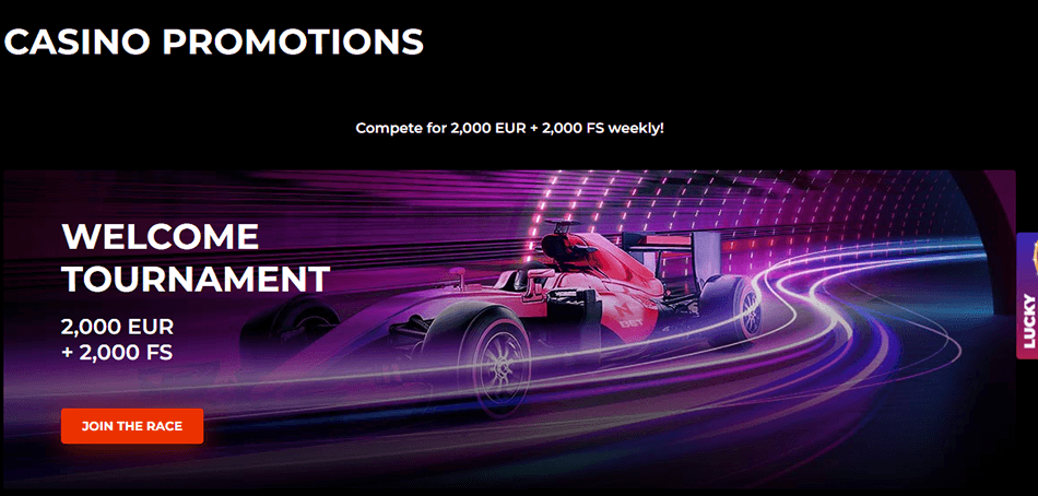 Lucky Spins – With the Lucky Spins promotion, you get to spin either the Silver wheel (€30+) or the Gold wheel (€100+) whenever you make a deposit. Both wheels always grant a guaranteed price, varying from 10 free spins all the way up to €10,000.