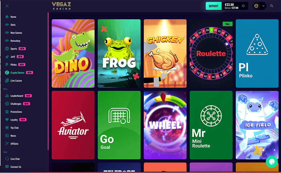 Note that crypto games cannot be played while having an active Vegaz Casino bonus.